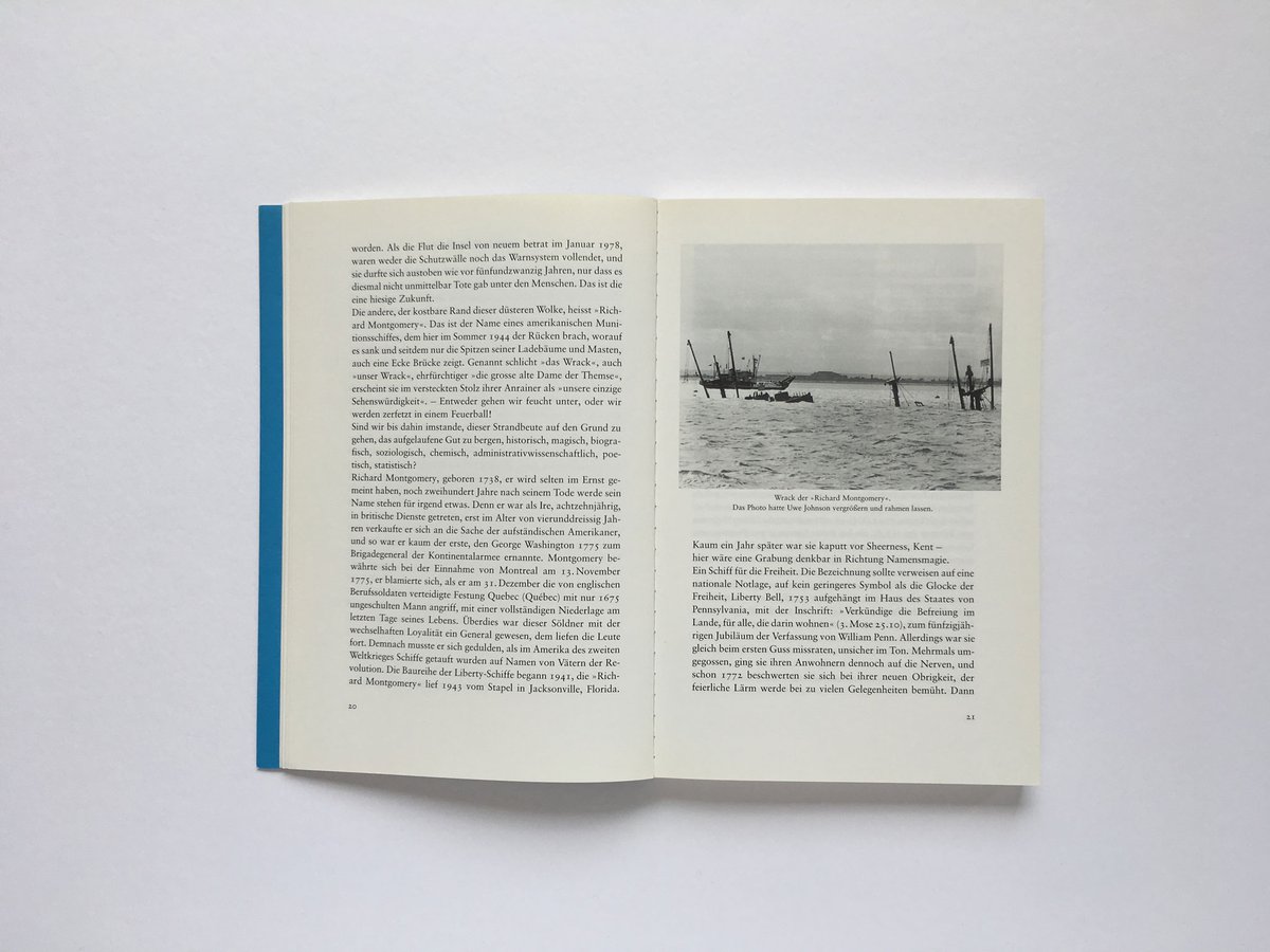 I had first seen this book featured on another list of books on the Thames Estuary – on a long list one of the few not dedicated to sailing, and the sole one in German, but it was only after Ken Worpole mentioned it in a brief conversation at the Broadway bookshop that I ordered a copy. It is an account of Johnson’s life on the Isle of Sheppey, where he – emigrated to is probably the best word – in 1974 and spent the remaining 10 years of his life (and slowly drank himself to death). What exactly had led Johnson – one of the most important German authors of his generation – to establish his (and his family’s) home in Sheerness has been subject of much speculation; Patrick Wright (academic & presenter of the BBC2 series ‘The River’ (and author of the accompanying book)) has studied Johnson’s life extensively and presented his research at 2016’s Estuary festival (and in a BBC article and broadcast that same year), comparing amongst others the geographical features of Sheerness and the view from his window in 26 marine parade to the landscape of is childhood and youth. The book provides an interesting insight both into 1970’s life in Sheerness and into Johnson’s personal life, who tried to conceal his true identity from the locals he befriended in the pub.